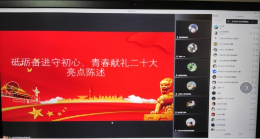 组织部在11月15日于线上召开了主题为“砥砺奋进守初心,青春献礼二十大”的十佳团日亮点陈述活动。此次活动21、22级团支书全体参与。